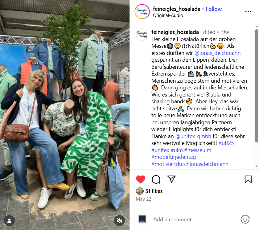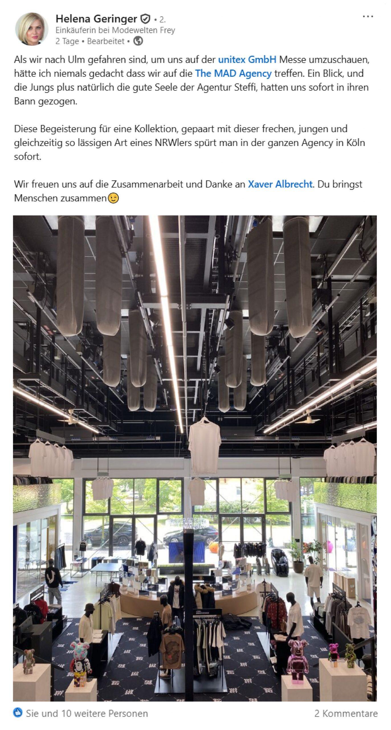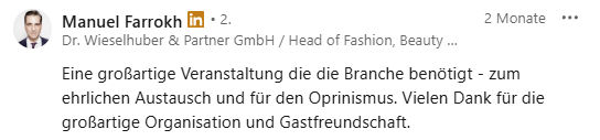 Unser USP: Wir verknüpfen Branchenkontakte, Innovation und Community auf eine Weise, die es so kein zweites Mal gibt. Hier treffen sich Entscheider der Fashion- und Lifestylebranche – niederschwellig, inspirierend, lebendig. Keine Kataloggespräche, sondern echte Verbindungen.